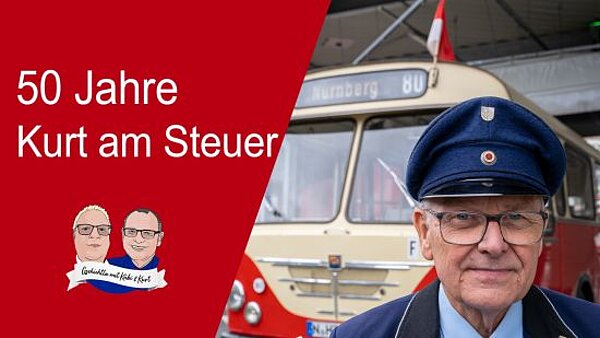 Kurt Gottschalk ist nicht nur einer der Protagonisten unserer Gschichtla, sondern mit inzwischen 71 Jahren Nürnbergs ältester Straßenbahn- und Busfahrer. Seit 50 Jahren sitzt er für die VAG am Steuer. In seinem Jubiläumsjahr lässt er uns an seinem reichen Erfahrungsschatz teilhaben. Reinschauen und mehr über Nürnbergs Busse und Bahnen erfahren!